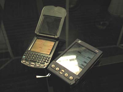 James set down his Visor Prism next to the Treo for a size comparison. Then he spent an hour trying to convince Handspring that the Treo was his and the Prisim was theirs� It didn�t work.