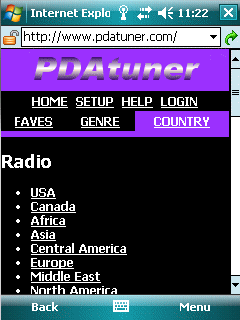 PDAtuner - LIVE Music, Online Radio & TV. - updated weekly - no upgrade costs - NO download required - save on memory - uses your existing Windows Media Player or any of the free mp3 players! - Visit PDAtuner com on your pda/smartphone to see all channels available - One location for PC and Mobile internet radio access.