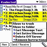 SnapperMail also has robust deleting options, allowing you to delete email on just on your handheld ("Trash"), just on the server ("Delete from Server"), or both automatically ("Junk").