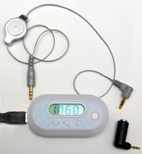 Getting the iSound working is easy. Hook the adapter to the Treo's earphone jack, connect the transmitter's reeled cable (stretch it out by pulling both ends or it'll tangle), and plug the cable into the FM transmitter.