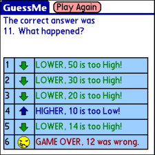 It's Alive, it's Alive! "GuessMe" is complete. In this image you can see how the screen looks when the player doesn't guess the correct answer before the game is over.