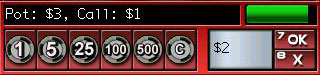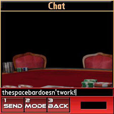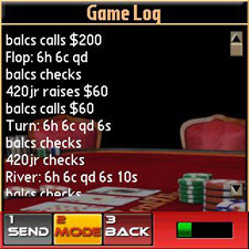 For that matter, the buttons for chips and for some actions are just too small, bordering on tiny and force you to whip out your stylus. The cancel and OK buttons for betting are so small, that even with a stylus you may find them hard to hit. This becomes especially irksome, since when you're playing in interactive game mode, you must make your actions before a green timer bar reaches zero.