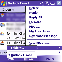 The 750 actually has better 5-way support than its US cousins, the 700w and 700wx. Outlook Mobile now has the "go to" option in its menu, which offers a shortcut to your email folders. That, believe it or not, was perhaps one of my biggest gripes with the 5-way support on the 700w|wx.