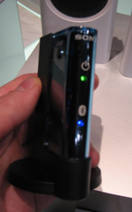 Rounding out my time at the Sony booth were some poorly labeled (and even more poorly explained by the reps) bluetooth audio devices. What we have here is the HWS-BTA2W, which is actually a clever little device once you get to know it. It can act as a bluetooth audio receiver to send audio from your A2DP-enabled phone to your stereo AND as a bluetooth audio transmitter to send your stereo's music to a pair of bluetooth headphones. Too bad it's not portable, but it's pretty neat.