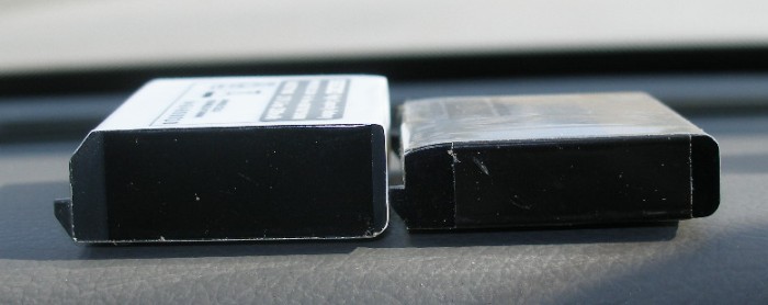 As you can see, there's just no way you're going to get the "UE" to stay put in a 700 with the stock battery door, so when you buy it, Seidio packs it with two replacement battery compartment doors, each featuring a 3mm rectangular bulge to accommodate it: