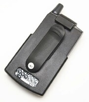 Seidio makes several flavors of Treo holsters each with different position, configuration, and sizes for the top clip. The clip on the one under review is a little over an inch wide. It has a small band of rubber on the inside, to protect its treasures finish, and it fits across the middle of the Treo. Other models have smaller top clips offset to the edge away from the antenna, like Smartphone Experts Safeguard Holster.