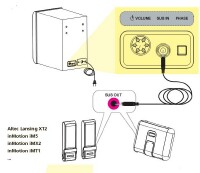 If you're familiar with typical home stereo system speaker wiring, you'll know that for a pair of loudspeakers to sound correct, speakers should be wired "in phase." Oddly, the BB2001 has a push-push phase button on its rear, next to the power / volume knob, and Altec's instructions say to push it in or leave it out depending on what sounds best to you. I found this very strange, since the subwoofer connects to the iMT1 with a single cable with stereo mini-jacks on both ends, so one would rightly assume it would automatically be in phase with the iMT1's speakers. I played with the phase button a bit and to my ears, it sounded best in the "out" position, so I just left it there and leave it alone.