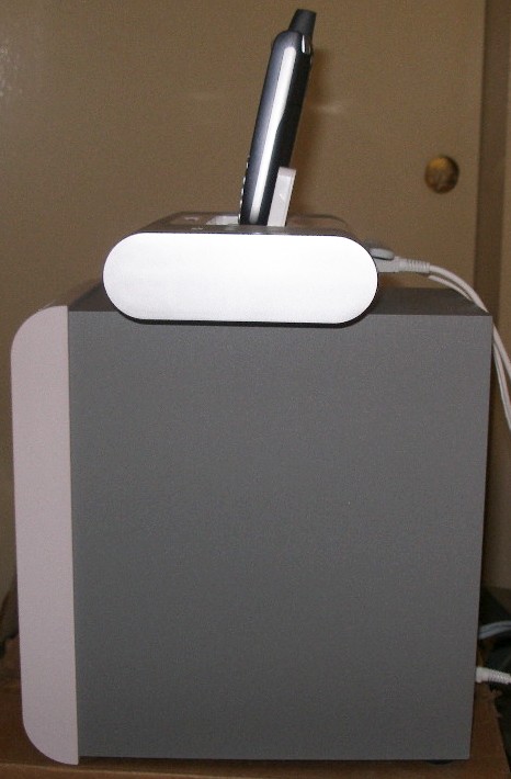 So when the iMT1 made the 3000 mile journey from Jay's home to mine, and I set it up bedside, plopped my 700p into it, fired up Pocket Tunes, and played some of my favorite prog rock, I called Jay and said "Y'know, this thing really does sound pretty good, considering it only has four tiny one inch speakers, but it needs a lot of help on the bottom end."