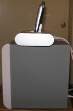 But every time you want to twiddle it for a bit more or less bass, you have to reach waaay down around behind the BB2001's cabinet to get to the knob. This will prove difficult if you choose to tuck the unit behind some furniture, or far under a table and against a wall for maximum bass, as you'll be on your hands and knees to reach that knob. I think this is the one and only design aspect where Altec goofed. The power / volume knob should have been on the front of the BB2001, preferably near the top of the grille. Then again, the unit is very attractive as a piece of industrial design, so you may just prefer to leave it out in plain view.
