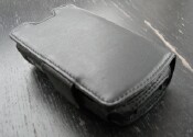 The bookcase style means that the cover flips open like a book, in this instance to the right. When closed, there are still many functions available from speakers (front and back) bottom connectors, mics, jacks, side buttons, and camera. The top is exposed at all times, though the miniSD slot and reset switch are inaccessible until you slide the Treo from the case. The upshot is that you can even close the case after you answer a call. The front flap uses an elegant hidden magnet to stay shut.