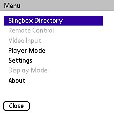 If you're a Slingbox owner and are familiar with the Windows or Mac interface, the PalmOS version is, well, a lot smaller and not as full-featured. After all, we're talking about a 2 inch screen here and real estate is pretty tight, so there are some different modes of operation which bring up different menu bars which you can highlight with your five-way pad and select with its center button, or use your stylus or finger. But if you've been Slinging for a while, you'll nail the operation of SPM in no time.