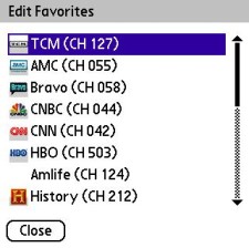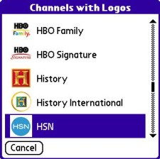 Once you've programmed them, just go back to the main SPM interface, cursor down and select the favorites icon (second from the left) to see those channel logos. Tap or select one and blammo, the SPM sends that channel's numbers to your cable box, and in a few seconds, you're watching it on your Treo.