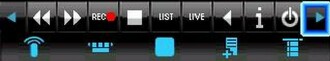 Select the far left-hand icon to bring up the remote control bars. Again, these are miniature versions that deliver similar functionality as the Windows SlingPlayer, and perform numerous functions with both your cable box AND your DVR, if you have one. Here's a shot of a TiVO control screen on the PalmOS SPM:
