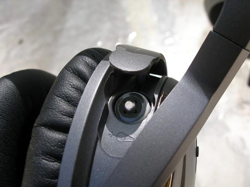 Atop the left earcup is a flip up battery door for the ANR circuitry. Fingernail it open, drop one AAA battery into it and press it shut. A small slide switch just below turns ANR on and off with a small blue indicator light just above it. The manual advises NOT to use a rechargeable battery a call to Jabra's tech support couldn't provide an answer as to why. I tried both an alkaline and a rechargeable NiMH battery and got identical results. Another mystery.. go figure.