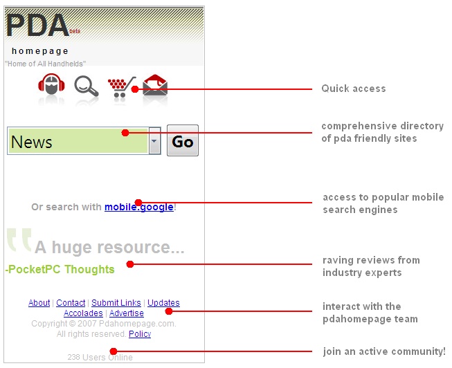 Related to the previous story, there is an online PDA friendly portal, called PDA Homepage, that links to almost a thousand PDA-friendly websites on the Internet. The website has evolved very much and has achieved recognition from such websites as Pocket PC Magazine as a "great innovation". You can reach it at pdahomepage.com.