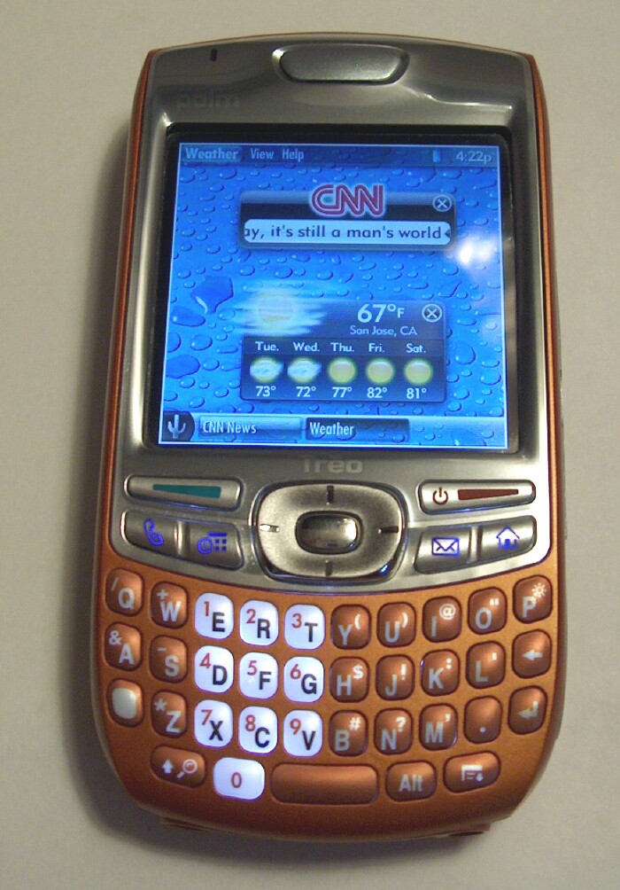 I downloaded the beta on my Treo 680 and it really looks great! You can see it running on my device in the above photo. I can't wait to see the full version. I love widgets and they'll really add to the Treo 680 user experience in a fun way. Looks sort of like my Apple PowerBook desktop with the widgets. You'll notice the battery and the clock in the upper right hand corner of my Treo 680. (click on thumbnailed pic for full version) Plus there are the two cool widgets which are limited for now to the CNN news headline ticker and a nice weather widget. With the Weather icon showing at the top left of the screen, I clicked on "view", and this gave me the option to put in my zip code or city. I clicked on the CNN News icon on the application bar at the bottom of the screen and that brought up the CNN News icon at the top left of the screen. Then I clicked on "category" and was given different news options. I chose tech news and saw some interesting tech news headlines roll across. Sweet. I can never get enough tech news! ;-)
