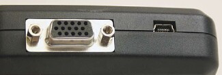 The device supports projectors or monitors that handle analog "SVGA" signals up to 800x600 pixels via a standard 15-pin VGA connector. This applies to most of the stuff in use currently, but not next weeks digital displays with HDMI, DVI, or other digital connections. No widescreen formats, either. If your projector also supports good ol VGA, as most of the exotic stuff does, itll work.