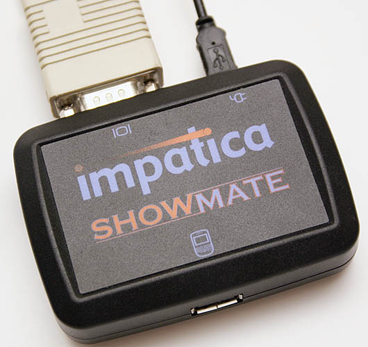 Impaticas Showmate brings some freedom to the task of giving a PowerPoint presentation. You hook it to your projector and to electric power, and pair it with the Bluetooth feature in your Windows Mobile Treo 700w, 700wx, or 750. After some software shenanigans that hopefully youve done in advance, you pace the slides from a suitable distance - near the back door if you need to escape in a hurry.