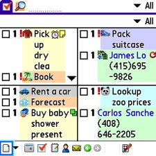 With this innovative method of viewing the boatloads of things youve been putting off all week, AG11 displays your tasks in four quadrant windows on your Treos screen. When you create a new task, aside from the four priority ranks, there is also a pull-down for Matrix. Set it to A, B, C, or D and Agendus shifts your task to the appropriate quadrant of the matrix view.