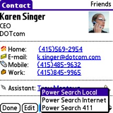 Remember that these choices reflect how AG11 displays names in the Agendus Contacts address book, but they have no impact on the native Palm Contacts app. After getting used to the Agendus way of doing things, its going to prove difficult, if not impossible to ever switch back to the native Palm app anyway, so dont fret over it. The AG11 contacts view offers more information in one place than the Palm built-in version could ever hope to, and having the ability to dial, send an e-mail, or search the web for a contact is something youll love.