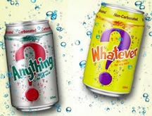 The catch? Though there are a variety of flavors for both beverages (Anything --Cola with Lemon, Apple, Fizz Up, Cloudy Lemon and Root Beer; Whatever -- Jasmine Green Tea, White Grape Tea, Apple Tea, Chrysanthemum Tea), consumers don't know which flavor they're getting until they take a sip. And the word that crosses my mind is: Random!