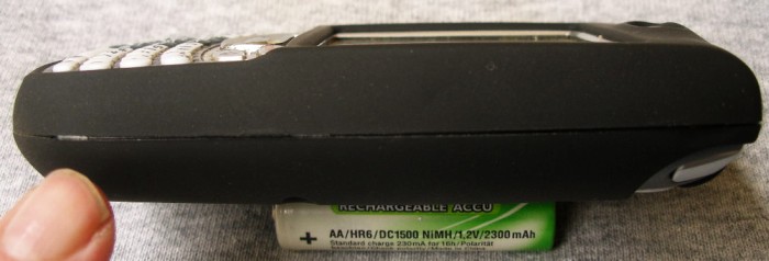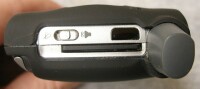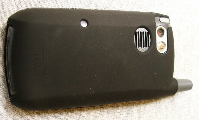 The back is perfectly smooth – no belt clip, no protruding nub for one. Seidio's signature reset hole is on the back, so if you have one of their optional Treo doors with a hole in it, you can poke your stylus right through the case and the door for a quick reset.