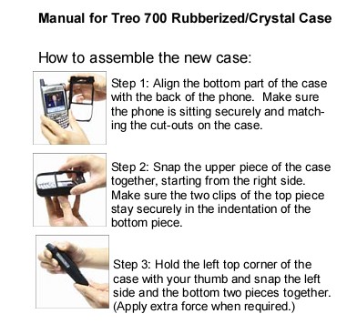 Another bunch of emails and phone calls revealed that they had forgotten to include the printed instruction sheet. D'oh! Y'see, there's a certain order of snapping these tiny molded protrusions together that you absolutely must follow when putting this case around your Treo or it just won't stay closed. And since I didn't have the instruction sheet, and I'd left my crystal ball in my colorful Gypsy wagon outside, well, instruction sheet in hand.. I carefully followed them and it worked! Snapped shut all the way around, although there was STILL a slight gap between the halves on the right hand side, it didn't just fall apart in my hands like the first one did.
