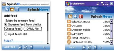 SplashNews is a new program by SplashData and is available for Palm OS and WM Treos. SplashNews lets you get the latest news, sports, gadget news, and SplashData blog feeds right on your mobile device, anytime and anywhere! You can add your favorite feeds and then sync with SplashData's servers to download the latest content on the go.