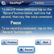I found VoicePlayIt to be easy as rhubarb pie to set up the first time, despite a lack of instructions for doing so. Before we go any further, let me emphasize that VoicePlayit does not work with Bluetooth headsets. You must have a wired headset or earphones that have a built in microphone, and the thing must be plugged in to the Treo before you try to train its voice recognition. Sure, Treos have a microphone, but the training cant operate with it. The program wont detect that theres no headset plugged in, so youre on your own to read the caveat. I didnt, and got frustrated.