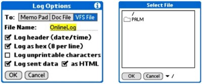 - Log incoming data (as text, hexadecimal and HTML) to: Memo Pad Entries (4K per record), 'Doc' File (to main memory), or VFS File (DOS text file on expansion memory)