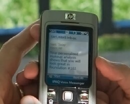 Skin pixels are extracted from the color corrected image of the persons face, and then compared to an existing database of previously captured and analyzed images of skin tones of real people. In a matter of seconds, people using the service receive a text message response with a recommendation on the shades of makeup that are best suited to their complexion.