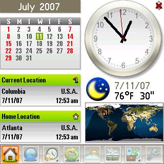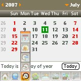 Clocks: Calendar. This one is only a display. It doesnt keep track of appointments, just shows a calendar in the usual way. Tap a date and itll display which week and day of the year youve selected. Maybe this has some usefulness to high-powered business people who have to worry about which week of sales some event happens in, but I find it superfluous. The Treos native Calendar app is better and more functional, though not as pretty.