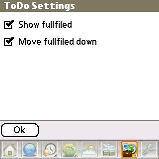 To-Do. Same icon, second choice. Your Treo has this built in, so I dont know why SplashData decided to do it again. The Treos Tasks app also permits beaming the tasks or even a whole category of them to other devices. SplashTravel does not. As you check off the To-Do items, you can have them gray out at the bottom of the list, or just go away.