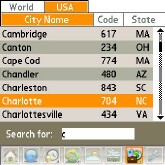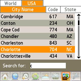 World data. With this neat utility, you can figure out what city an area code is in, look up the country code for dialing a phone number, and even find out what domain the country normally uses (like .com, .ca, .fr, or .de). So, if youre in Sweden, the country code is 46, and the domains normally end in .se. To look up by code or domain, tap the titles to re-sort the list. The USA tab looks up cities by telephone area codes (or vice versa) and displays the Postal Services official two-letter codes for the states. There are no Canadian or Mexican tabs. There should be.