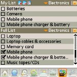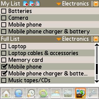 Packing Checklist. This ones sub-icon looks like a suitcase. It lets you pick out a specialized list of essentials to pack for your trip. The categories cover everything you could name, and if you take along all that stuff, I hope youre traveling in a freighter. But whatever else you travel with, dont forget your Treo!