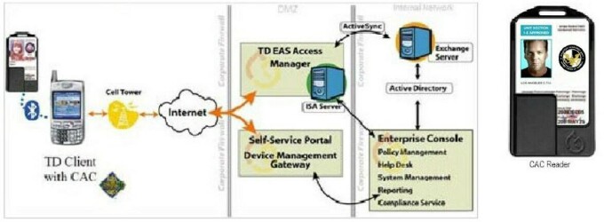 The CAC Pack from Trust Digital, a leading provider of enterprise smartphone security and management software, was officially called the Smartphone Security Version 7 CAC Pack. The CAC Pack addresses Homeland Security Presidential Directive-12, which requires all federal agencies to implement a system of smartcards that deliver a common, two-factor authentication method for physical doors, computers and smartphones in all federal buildings. Hmmm, I'm sure Jack Bauer will have the CAC Pack if he switches over to a WM Treo on "24" this coming season. Sorry, just had to throw that in since many readers enjoy watching Jack use a Treo on the show.