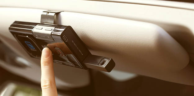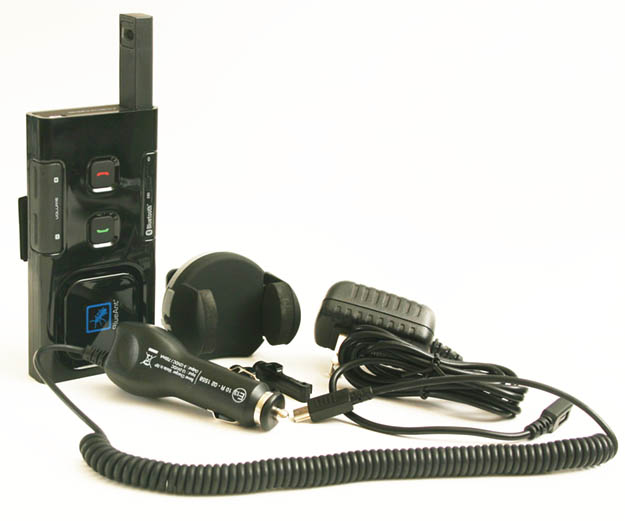 Okay, back to the Supertooth Light. Black or white model TreoCentral sells the white one - it snaps magnetically to your cars sun visor and yields impressively loud, noise-canceled incoming audio from your callers. The speakerphone keeps track of up to five paired devices, and if you add another one it automatically bumps the one thats been least used. Nice.