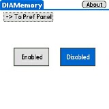 All you need to do is enable it and the rest is automated. Whenever you leave an application, DIAMemory will remember the DIA status (up/down) and the screen orientation. Then, when you return to that application, those settings will be retrieved and applied. Imagine the time you could save; like having the Palm launcher in portrait mode with the DIA up and instantly switching to the web browser in landscape with full screen. DIAMemory even has a preference panel option to switch it from a Palm application to a preference panel and back.