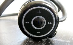 Like the majority of headset offerings these days, the Com Ones are the backphone variety. They are basic black, with the circular foam covered earpieces offset with a circular silver decal. On the right earpiece are the controls. Skywards for volume up, towards the ground for volume down. Track forward is towards the front of your body, track backwards the opposite. There are no raised buttons here though. So youll have to simply memorize which button does what. In the center of these four controls is a call control button. Youll notice that there is no button for music pause/stop/start though the music will pause automatically while you are on a voice call.