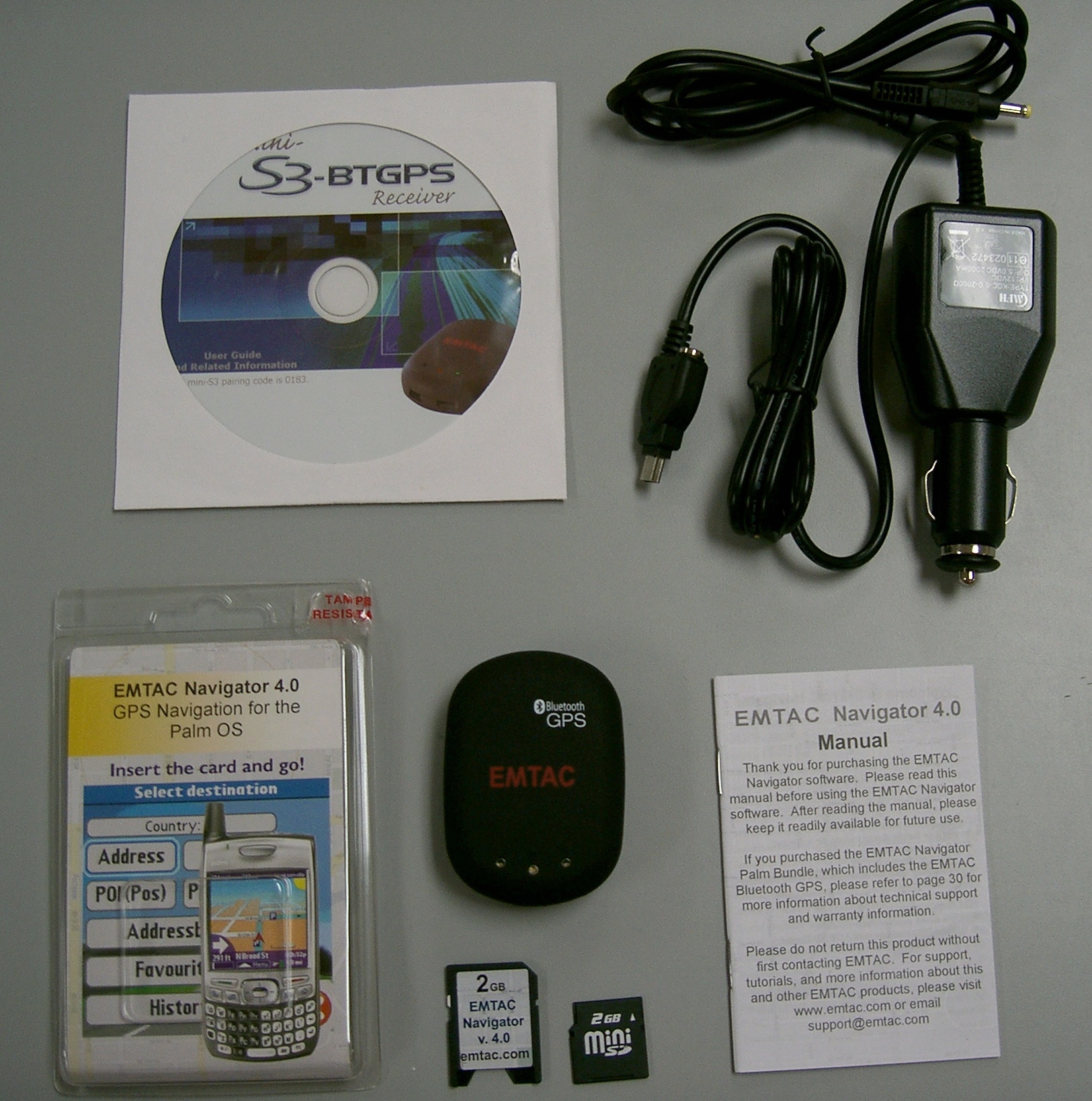 - EMTAC Navigator 4.0 Software on a pre-loaded 2 GB mini-SD card (with SD adapter)