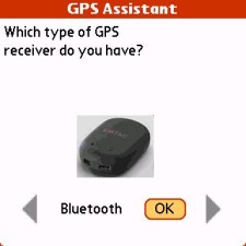 After tapping on EMTAC Navigator, I was prompted to choose which type of GPS receiver I have. Aside from the first choice, Bluetooth GPS, the other options are jacket, cable, and none. If I wanted to use my Seidio car cradle's GPS receiver instead of the mini-S3 I would select cable, which would let me use my new Aliph Jawbone Bluetooth headset, or any other Bluetooth headset at the same time.