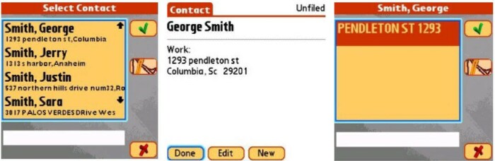For those with previous versions of the software and those who have read my 3.0 review, you will know EMTAC's linking to the Treo's address book was a sore spot. It would let you use some addresses, but not others, without any apparent rhyme nor reason.. overall I would say the older version worked about twenty percent of the time. Although the address book support in V4.0 is not 100%, I'd guesstimate it has improved to about 75-80%. The older software had serious problems with parsing street names how many ways can you enter the word "street" into the address field of one of your contacts?