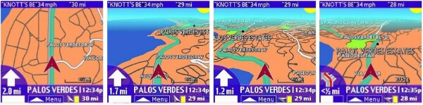 The navigation screen is VERY pretty and colorful, and again, offers both 2D and 3D views.