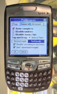 He noted the Palm Treo 755p browser's configuration controls can dramatically improve the displayed results by disabling cascading style sheets.
