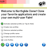 Northglide has recently updated its new app Northglide Cloner to v.1.01. Northglide Cloner is a truly unique program that lets you extend your favorite applications like never before. By making exact replicates of selected applications, Northglide Cloner lets you create your own multi-user Palm! Keep multiple Address Books, Date Books, accounting programs with multiple accounts, games with different difficulty levels and so much more. You can create replicates just to play with, without damaging the original data, and even create shortcuts to launch applications with a selected profile directly from your favorite launcher screen. If one of your favorite applications is limited to a single profile, or you are relying on an old program that will never be updated again, Northglide Cloner is for you!