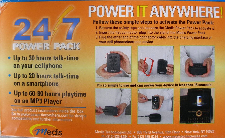 The Medis 24-7 Fuel Cell Power Pack is a novel new device with cutting-edge technology that offers yet another way to use and charge your Treo, should your battery conk out. The upside is the price is not outrageous, it's compact, and it works as it claims to work.