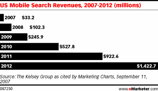 Note: U.S. mobile search advertising revenues are projected to reach $1.4 billion in 2012, up from $33.2 million in 2007, according to The Kelsey Group, in a story posted at eMarketer.com.