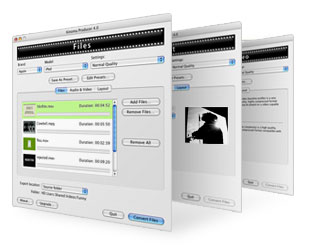 And your Animation files in GIF, Flash, and FLC, AND your Audio files, in AIFF, AU, MP3, M4A, WAV, and WMA, AND your Still Image files, be they BMP, JPEG, Photoshop, PICT, PNG, Targa, or TIFF, and more, and scale them down, singly or in batches, and spit them back out in any format Kinoma Player 4 EX (or other capable software) knows how to play, whether played locally off a card, or streamed over the air. And it does it with such ease, it's almost scary.