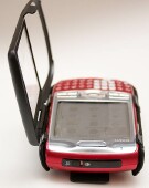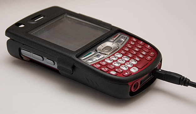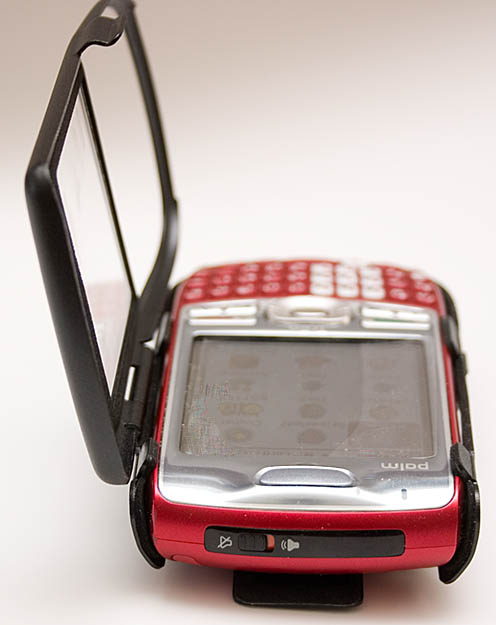 While its nestled in the Monaco Aluminum case, the Treo 680 remains almost entirely usable. As previously mentioned, you have to open the windowed front cover to tap the screen, but the 5-Way and all the other buttons are readily available to your fingers. This includes the volume up/down buttons and the side button that you can configure to do whatever you like like call home or bring up the caller log. The charge and HotSync connectors at the bottom, as well as the Treos earphone jack show through an opening. At the top, the ringer switch (ring or vibrate) and the IR port also stay accessible. Theres a little porthole for the LED to peek out, as well as diagonal openings over the speaker.