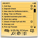 The current memo application on the Treo was not built for the Treo. If was built for PDAs. With this, there are major usability flaws that make the current memo application not acceptable and sometimes a pain to use on the Treo. So we fixed this and added some great new features to increase your productivity. Some of which are highlighted below.
